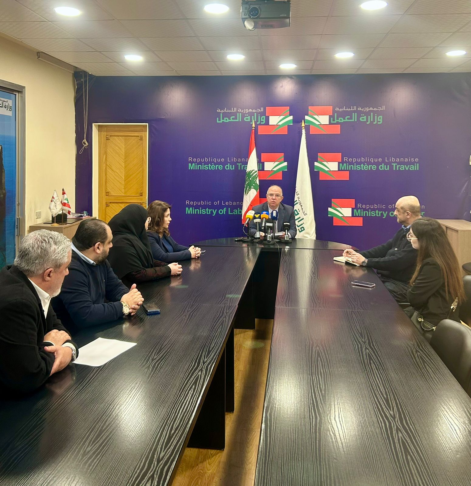 عقد وزير العمل الدكتور محمد حيدر ظهر اليوم مؤتمرا صحافيا تناول فيه تنظيم فرص العمل في الخارج ورفض أي مبادرات غير منسقة خارج الاطار الرسمي للدولة اللبنانية، الى جانب موضوع تسوية اوضاع العمال الأجانب في لبنان وذلك في في مكتبه في الوزارة .